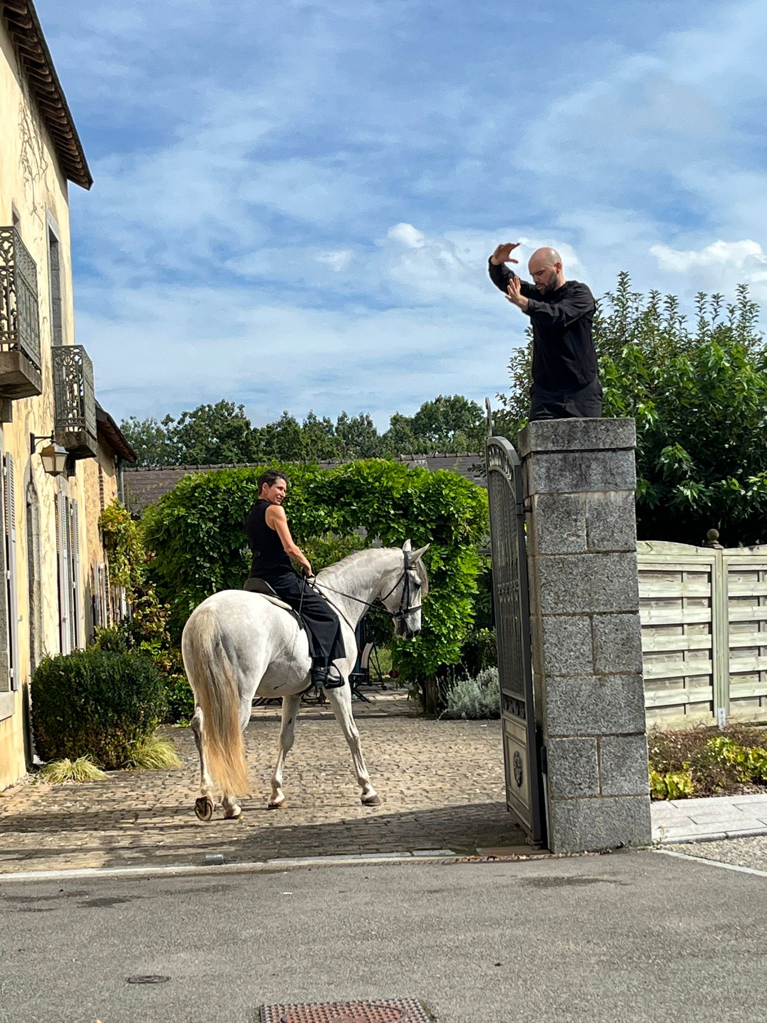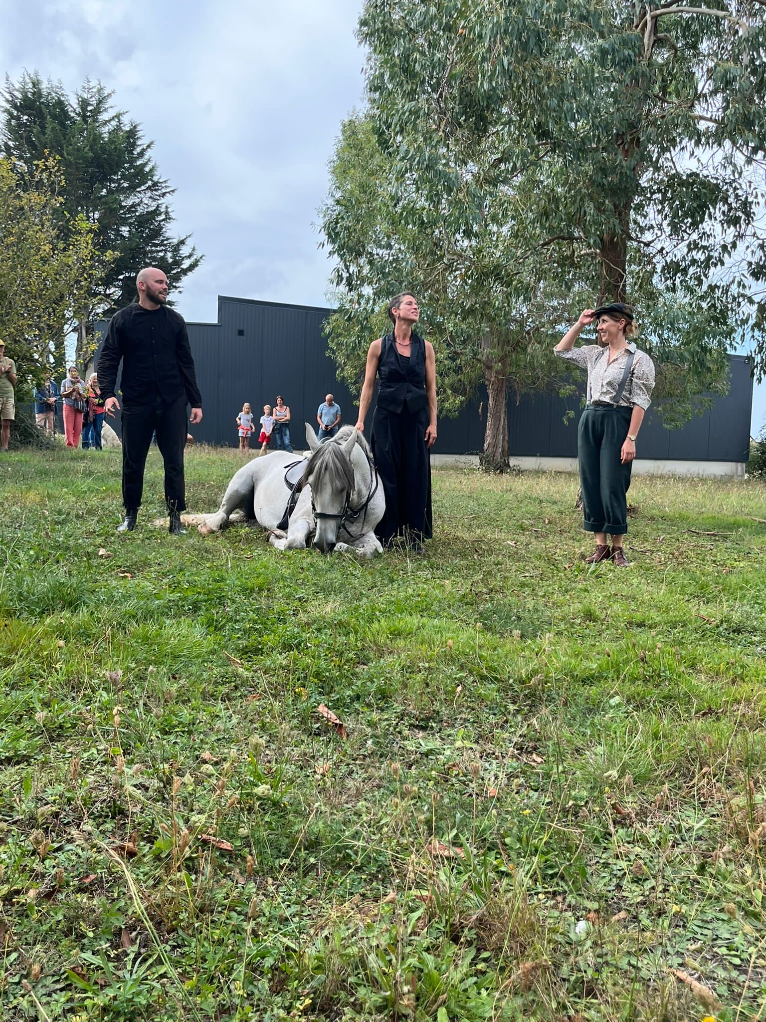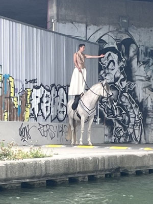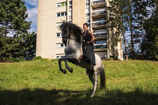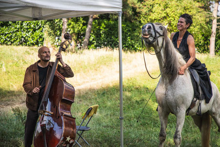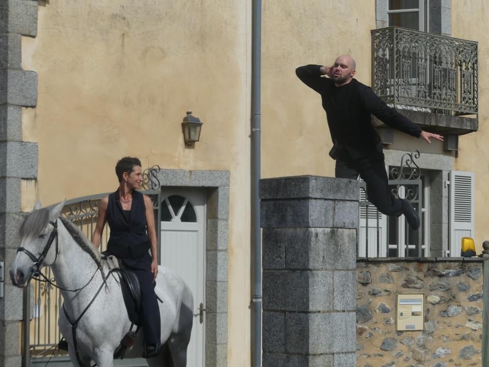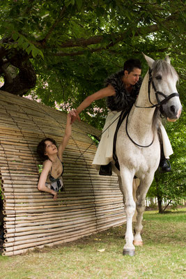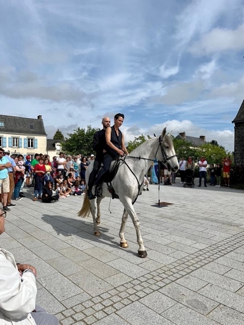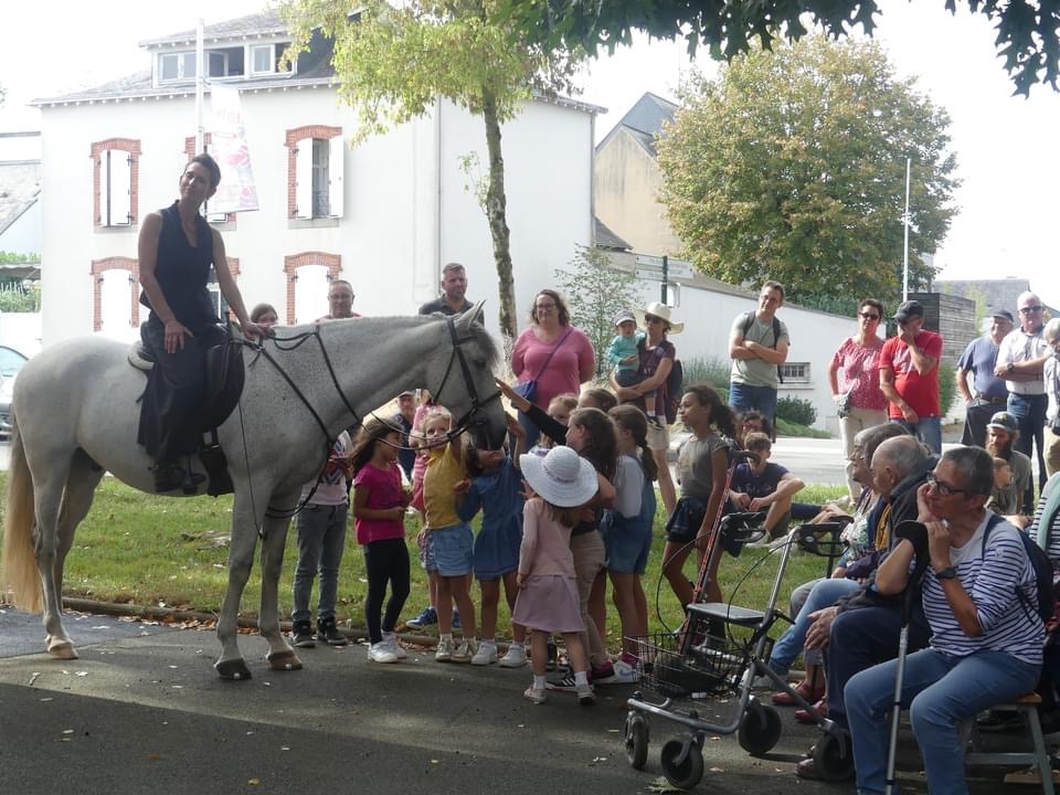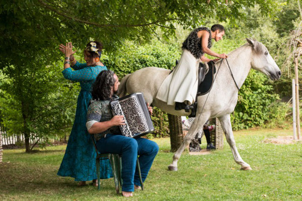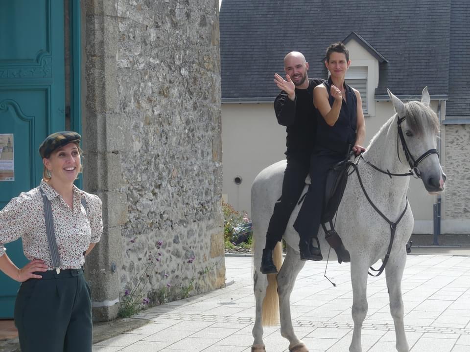 Un cheval, une écuyère, un danseur, une comédienne, pour accompagner 2 conteurs du village, en déambulation.