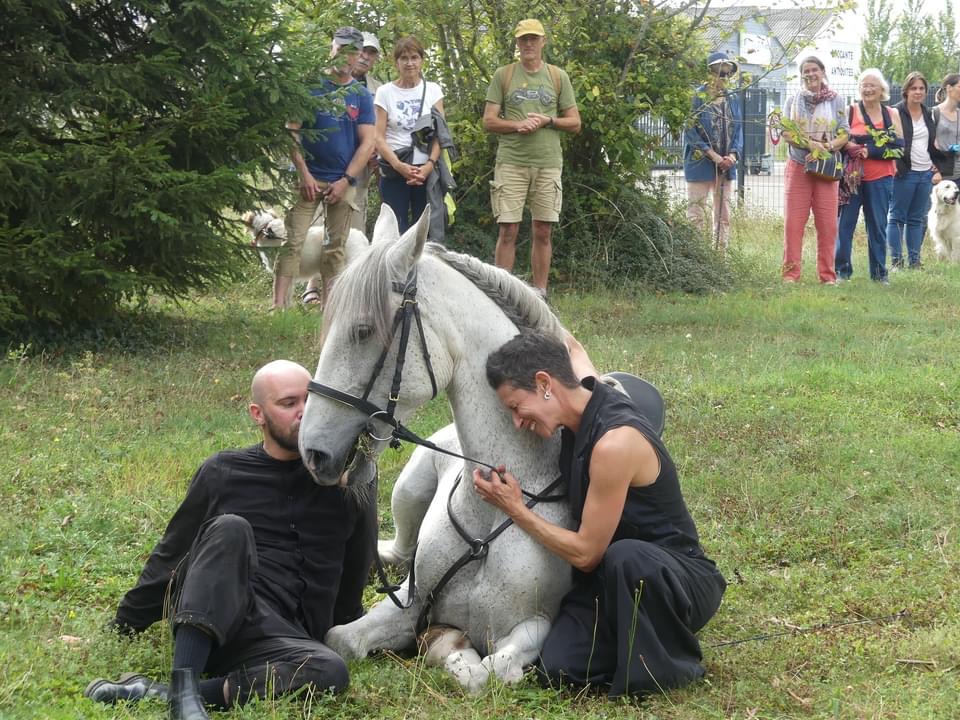 Toujours adaptée à la demande, la performance peut être conçue sous la forme d’une déambulation dans l’espace public ou en fixe, le spectacle s’adapte aux lieux de la ville et des champs, amenant avec lui les spectateurs-acteurs, conférant ainsi à chaque performance un caractère unique.